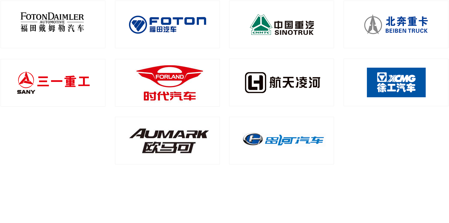 给主机厂配套钢轮。客户包括福田汽车、三一集团、北奔重卡、福田戴姆勒汽车、时代汽车、福田欧马可、中国重汽、徐工集团、航天凌河、昌河汽车等知名厂家。Provide steel wheels to the host factory. Customers include well-known manufacturers such as Foton Motor, Sany Group, Beiben Heavy Truck, Foton Daimler, Time Motor, Foton Omar, China National Heavy Duty Truck Group, XCMG Group, Aerospace Linghe, and Changhe Automobile.